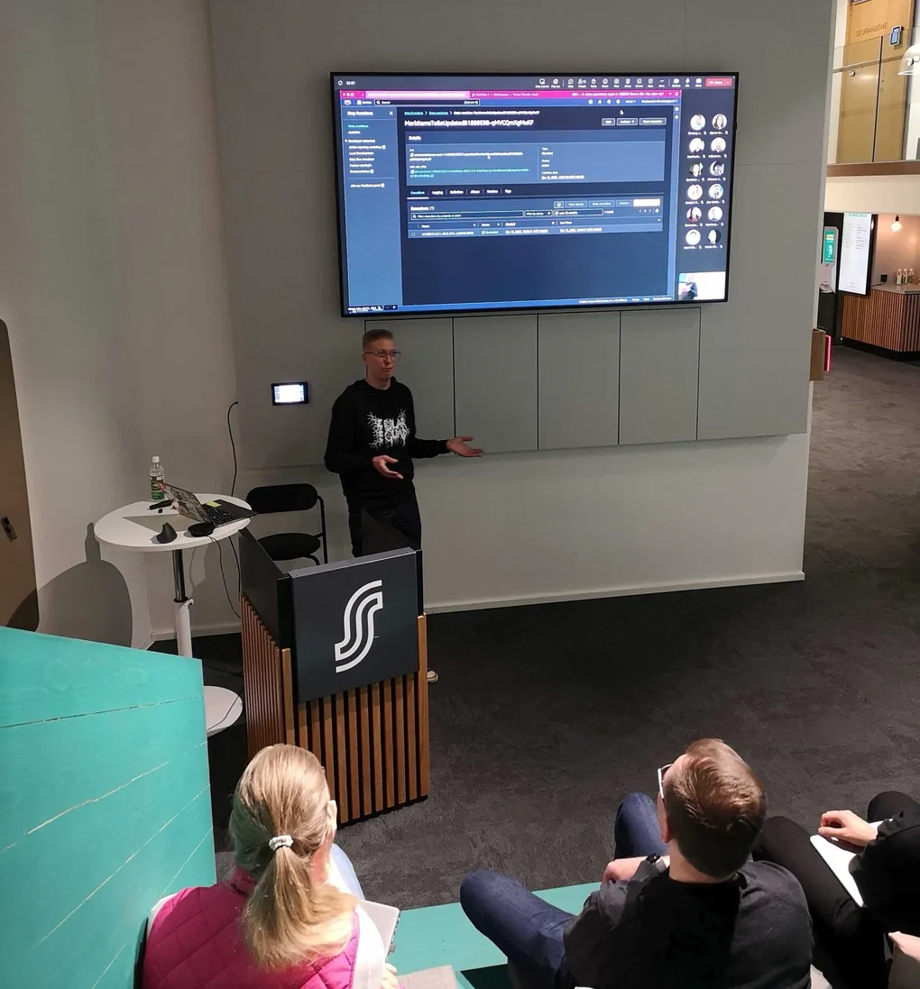 I talked about big numbers (billions) and small numbers (dollars) in the same sentence and how to process multi-tenant data in a single-tenant manner โ let the rest of the context remain as a secret, but there is a huge pile of paper and #AWS #serverless event-driven architecture involved ๐